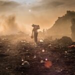 Social-compliance-scavenger-is-collecting-reusablee-materials-in-a-open-burni...