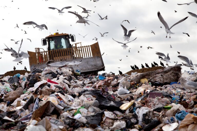 MSW-municipal-solid-waste-bulldozer-on-a-landfill-birds-flying-WOIMA-Corporat...