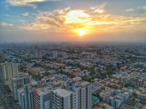 Sunset-in-karachi-pakistan-karachi-landscape-karachi-skyline-drowning-in-wast...